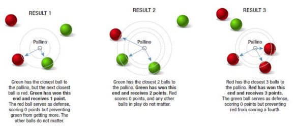- *If after all balls are played there is still a tie, no points are awarded and play resumes with the Team last scoring tossing the pallino from the opposite end of the court.